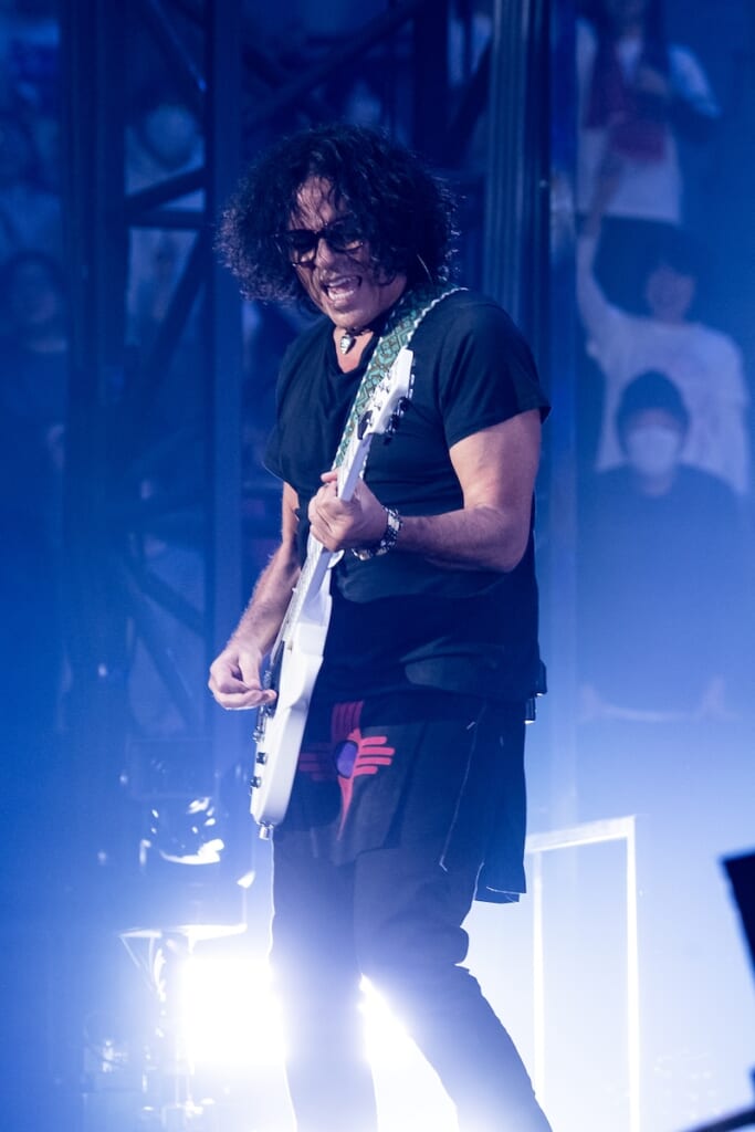 アンコールの「AISHI-AISARE」では、銀色に輝くクローム・フィニッシュのIdolmakerが登場。指板のポジション・マークが光るステージ映えするギターを手に、豪快なリフの応酬で勢いを加速させる。