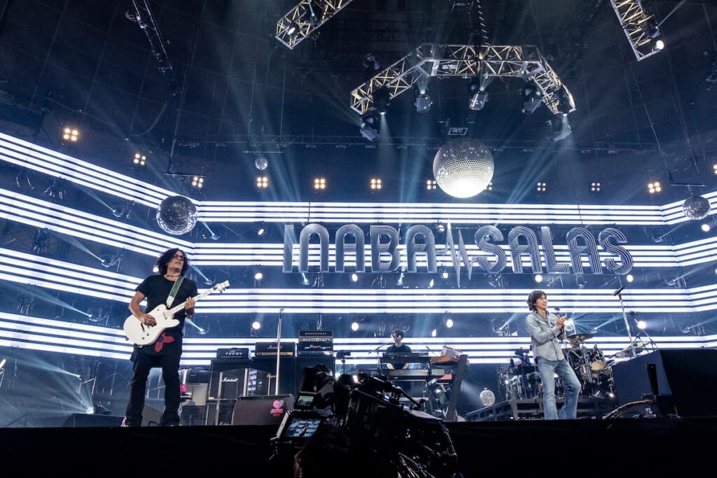 INABA/SALASの3rdアルバム『ATOMIC CHIHUAHUA』に伴う全国ツアー、『INABA/SALAS TOUR 2025 -Never Goodbye Only Hello-』が開催された。2020年の2nd『Maximum Huavo』リリース後のツアーはコロナ禍で中止になってしまったため、8年ぶりとなる2度目のツアーだ。最新作の楽曲だけでなく、スティーヴィー・サラス本人が再現するのは難しいと語るギター・アレンジに凝った2nd収録曲をライブで初体験できることも嬉しい。ここではツアー中盤にあたる2025年3月23日のLaLa Arena TOKYO-BAY公演の模様をレポートしたい。