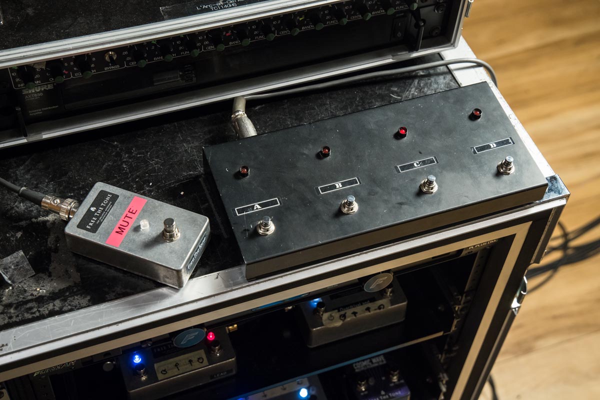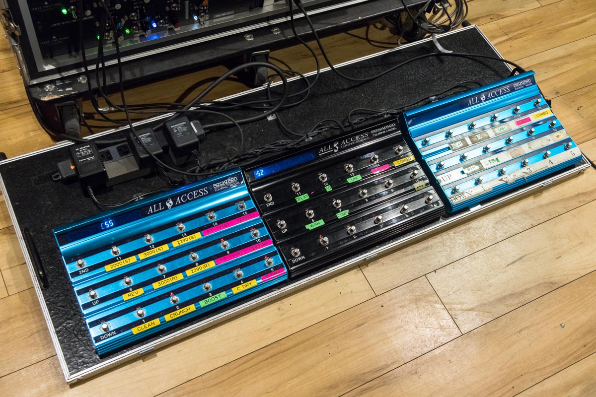 ツアーやライヴのたびにマイナーチェンジを経て洗練されてきたラックシステム。今回もいくつかのエフェクターが新たに加わった。