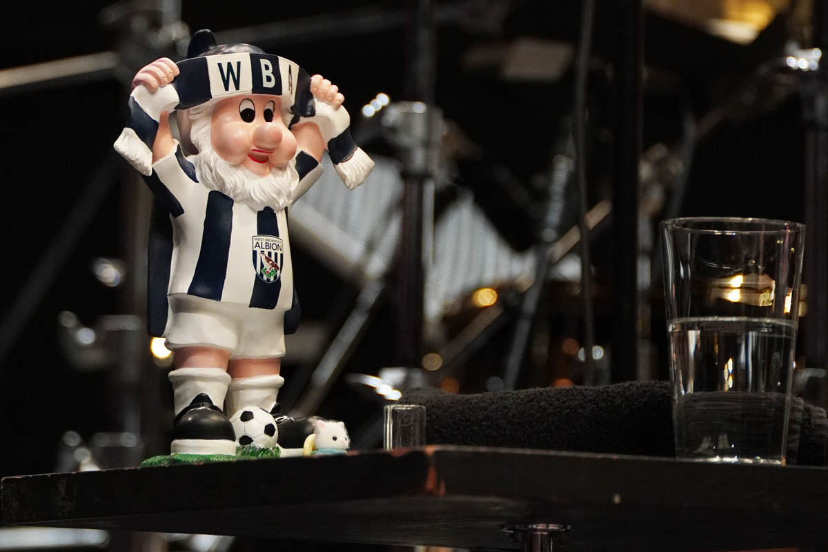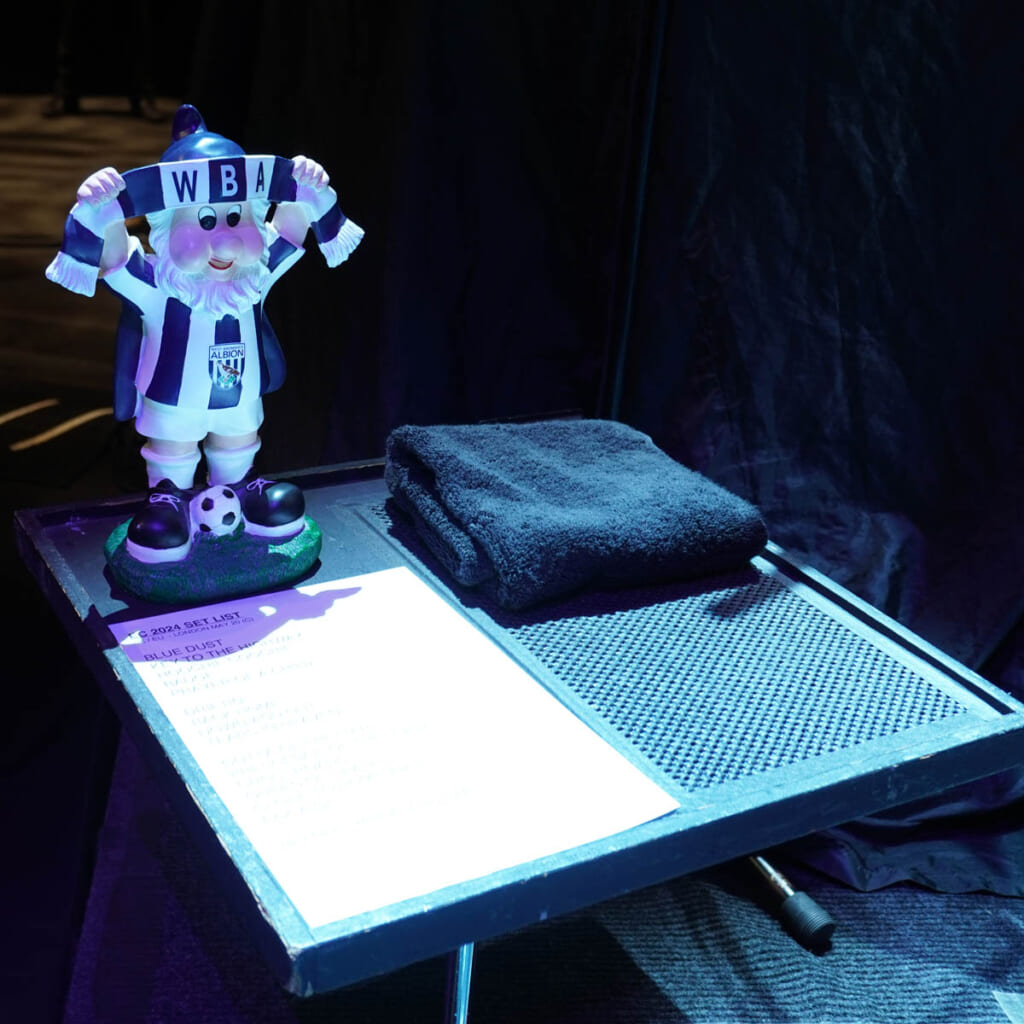 ツアー当時、ちょうどイギリスはサッカーシーズンであったため、“ALBION”というチームのマスコット(通称、グノーム)が置かれていた。調査したところ2015年のものであることが判明。アルバム『No Reason To Cry』の裏ジャケにも、このチームの刺繍が入ったタオルが確認でき、エリックが長年にわたりこのチームを応援してきたことがわかる。