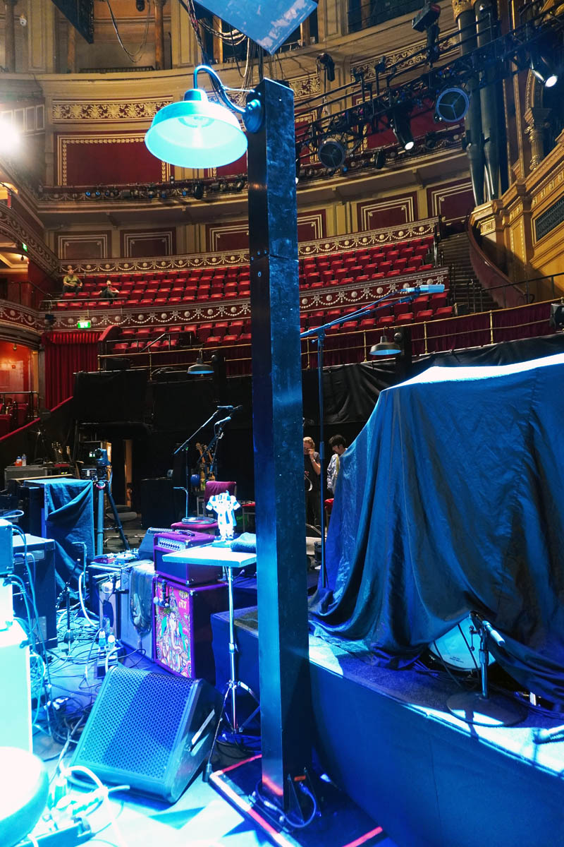エリック・クラプトンがロンドン公演(2024年5月)のステージで使用した機材を現地レポート! 今回は超貴重なエリックのステージ・テーブルとクラシックなアンティーク照明をご紹介。