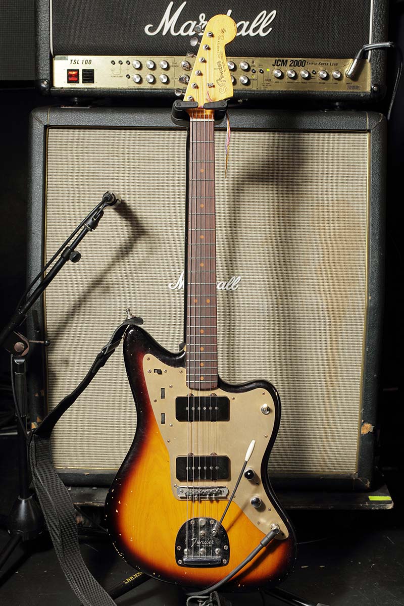 ダミアンのメイン・ギターは、2020年に入手したという60周年記念モデルのジャズマスター。ブリッジがMastery M1に交換されているほか、トーン・ノブが取れてしまったため新しいものに交換されている。ほかは入手時のままとのこと。