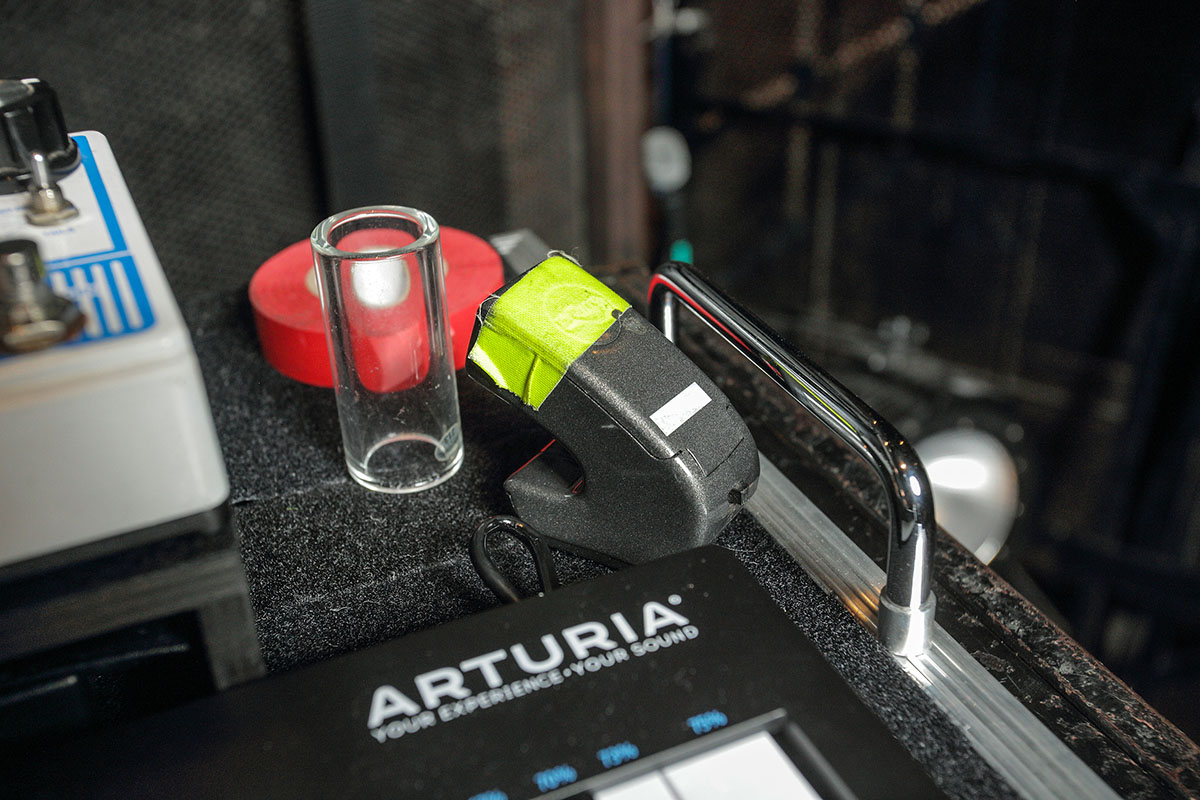 ダミアンが「Crying」、「Born Into The Fight」、「Can’t Pretend To Know」などで使用するスライド・バー。E-Bowは「Crying」で使用された。