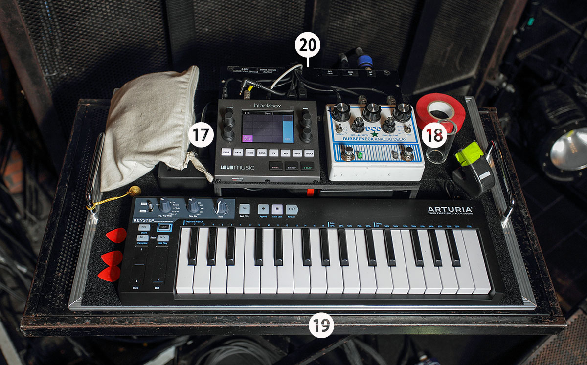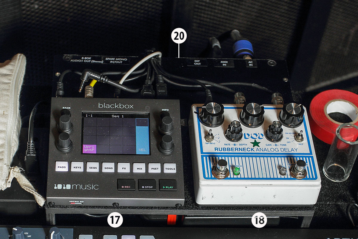 ⑲KeyStepは⑰Blackboxを操作するためのMIDIキーボードで、「Words Lost Meaning」、「A Distant Life」、「Ethel」などで使用していた。