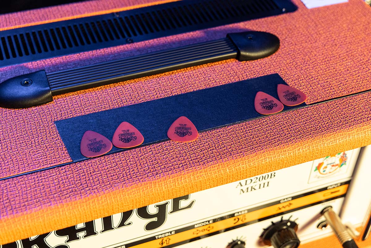 ピックはスチュアート・ブレイスウェイト(g)と同じく、Jim DunlopのTortex Standard .60mmを愛用。