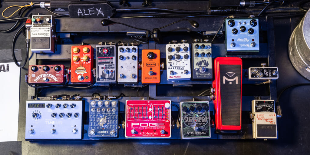 2025年3月、モグワイが約3年ぶりの来日公演を行なった。3月12日(水)Zepp Shinjuku公演でメンバーの機材撮影を行なった。本記事では、バリー・バーンズ(g,key)が使用したOwl’s Guitar Sanctuary製のオリジナル・ギターとSGスタンダードをご紹介。ちなみに機材撮影の際、スタッフから“ギターは絶対にラックから動かさないでくれ”と言われてしまったため、ギターの全景写真は後日ギター・テックのギャヴィン・マクスウェル(アイドルズのテックも兼任)から送ってもらったものを掲載する。