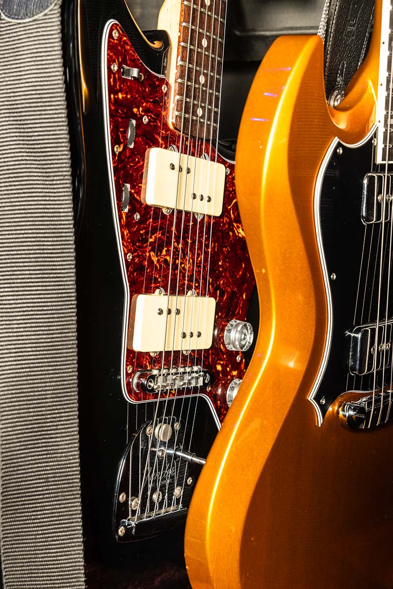 ピックアップはCreamery Custom Handwound Pickupsのハムバッカー、Wide Range Jazzmasterに交換されている。ノブもスピード・ノブに換装済み。