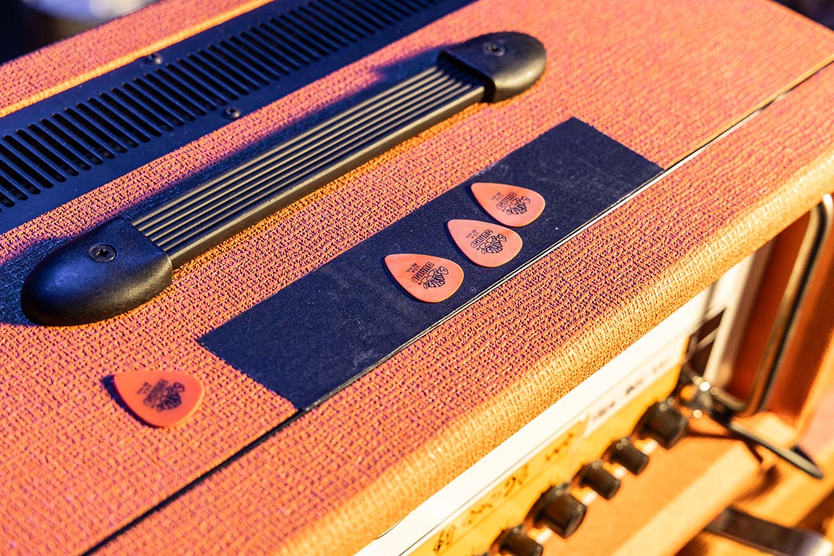 アレックスのピックはスチュアート・ブレイスウェイト(g)、バリ・バーンズ(g,key)と同じく、Jim DunlopのTortex Standard .60mmを愛用。