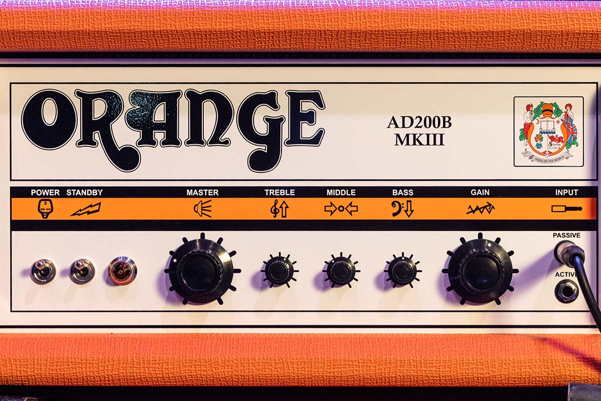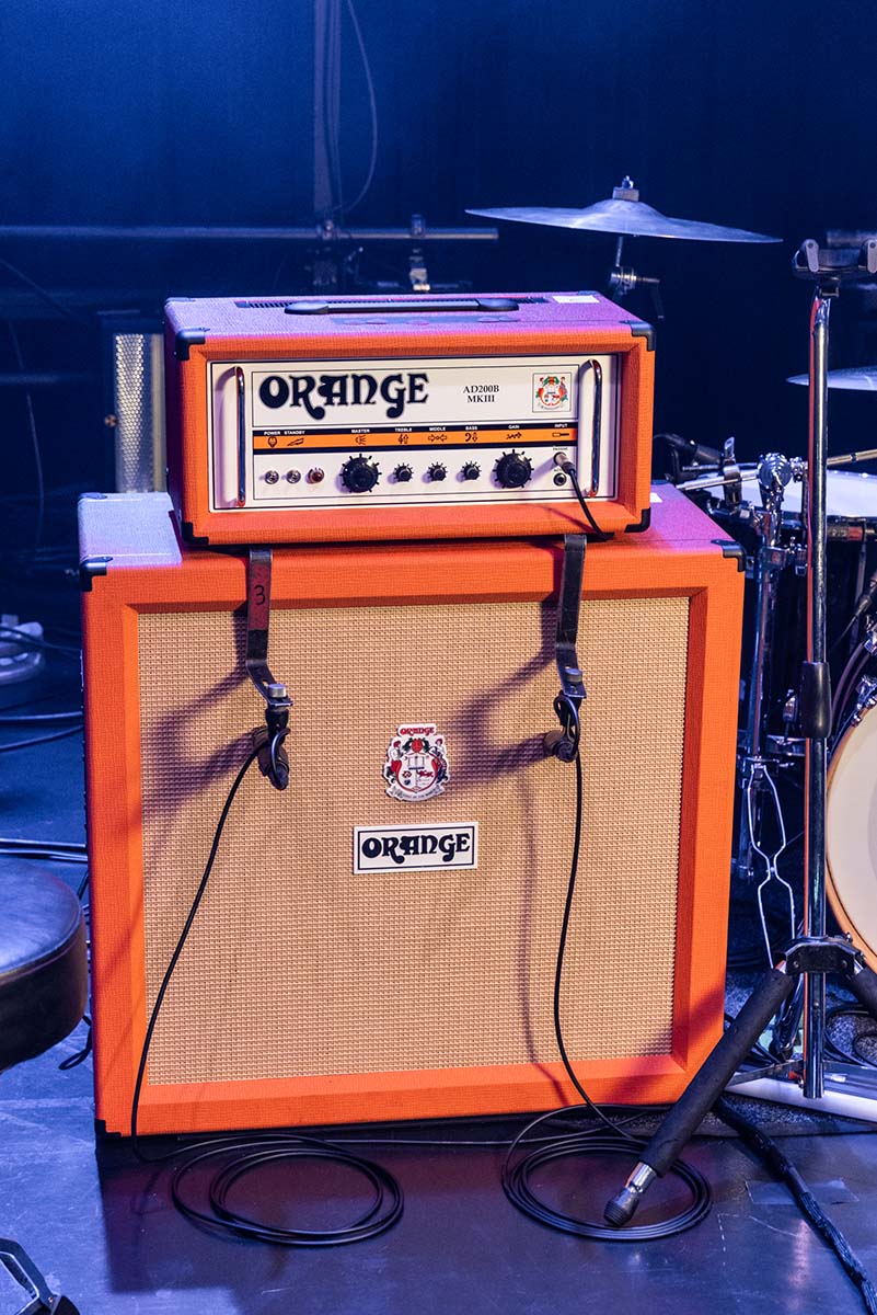 バリーが使用したアンプは、Orangeのベース用モデル、AD200B MKⅢとPPC412キャビネットの組み合わせ。日本でレンタルしたものだ。