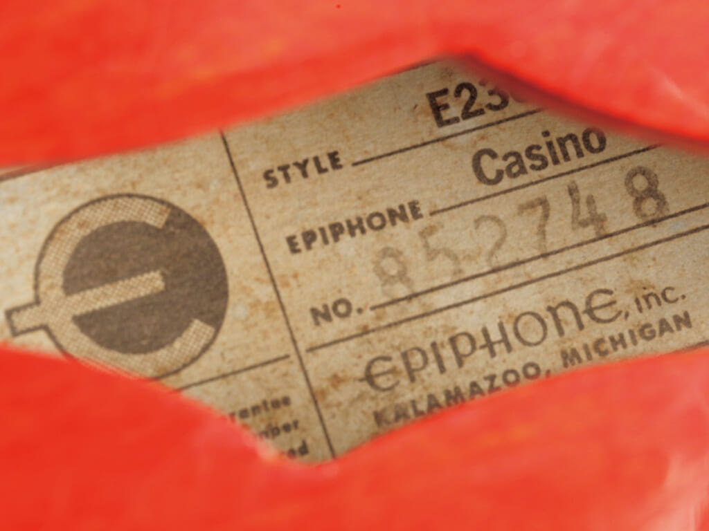 エレキ・ギター史に名を残す名器エピフォン・カジノは1961年に登場した。とはいえ、誕生時点ですでにこのギターには雛形と呼べるモデル=ギブソンES-330(58年発売)が存在し、その別バリエーションとして誕生。ゆえに構造はギブソンES-330を全面的に踏襲しているが、当時のギブソン社の工場、通称“カラマズー工場”のプライドそのままの高クオリティで製造され、決して廉価版製品ではなかった(発売当時の価格は275ドル。当時のギブソンES-330と同じだった)。