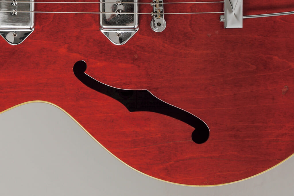 60年代カラマズー製カジノの共通点として、2点留めのトラス・ロッド・カバー、ボディ内に貼られた青いラベルが挙げられる。ただし“ブルー・ラベル”とは日本製カジノが登場して以降のモデル(次項参照)を指す言葉であり、USA製は“USA期”だけで話が通じることは言うまでもないだろう。