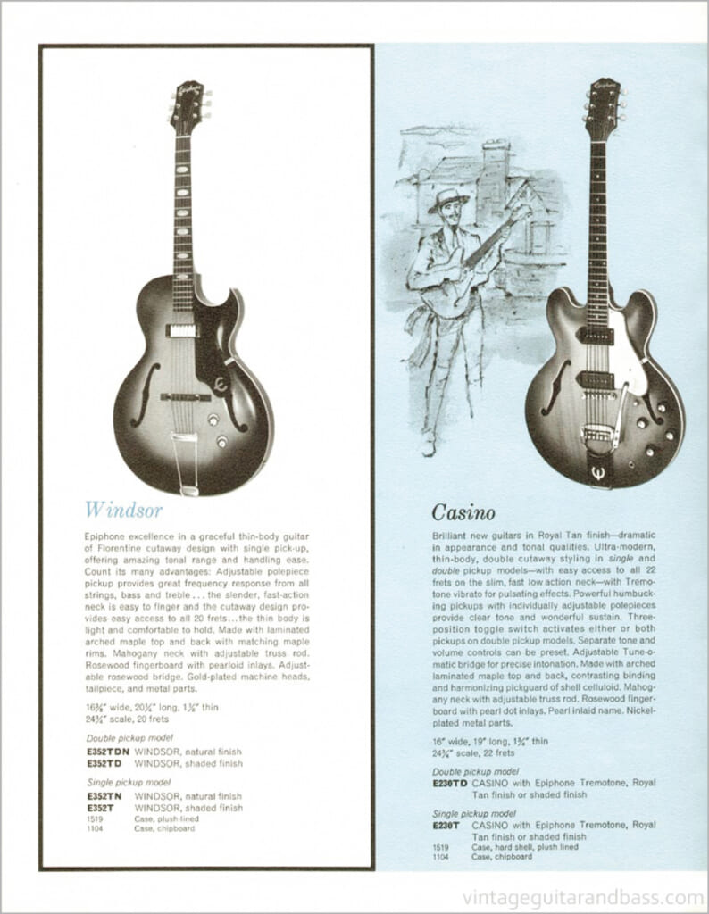 エピフォン・カジノの生産地と仕様の変遷を辿る企画。今回は1961~1969年のUSA製ブルー・ラベルの時期を紹介。