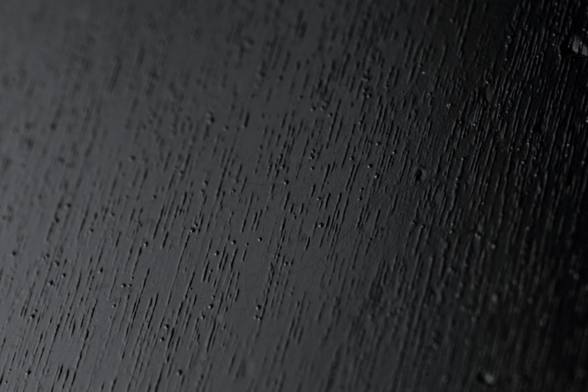 ブラックのラッカー塗装はとても薄く仕上げられており、ボディの鳴りを体感することができる。