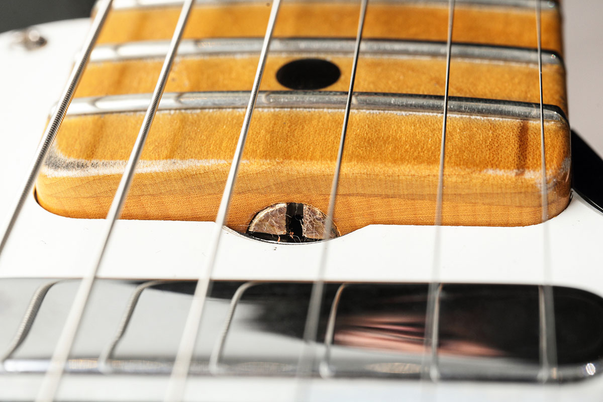 本器もその特徴を踏襲し、指板には1967年からオプションとして登場した、通称“貼りメイプル“仕様を採用。デニスが厳選したエレガントな3Aグレードのメイプル材をラミネートすることで、ギター全体に気品と存在感をもたらしている。ボディにも、彼が選び抜いた2ピース・アルダーを使用し、さらに近年人気のロースト加工を施すことで、新品でありながらもビンテージ・ライクな響きを実現。随所に宿る彼の美学とこだわりが、このモデルの完成度を一層引き上げている。