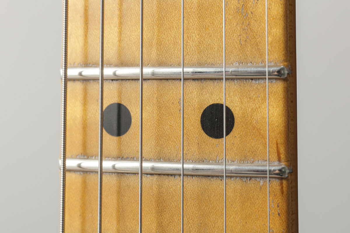 ミディアム・ジャンボ・フレットが採用されており、快適な演奏性を実現。12フレットのポジション・マークの幅が狭いのが特徴だ。