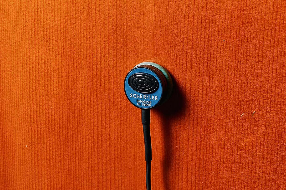 ピックアップはSchertlerのDYN-G-P48が取り付けられていた。48Vファンタム電源で駆動するモデルで、XLRケーブルを介してDIに接続される。また、DYN-G-P48に加えてステージ上に設置されたマイク(DPA Microphones / 4011-TL)でも収音され、PA側で2つのサウンドをミックスして出力。