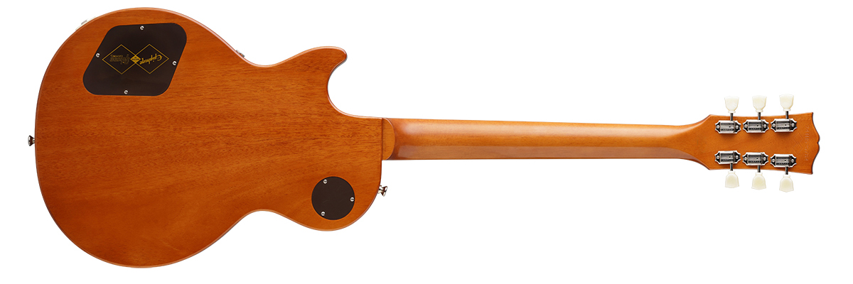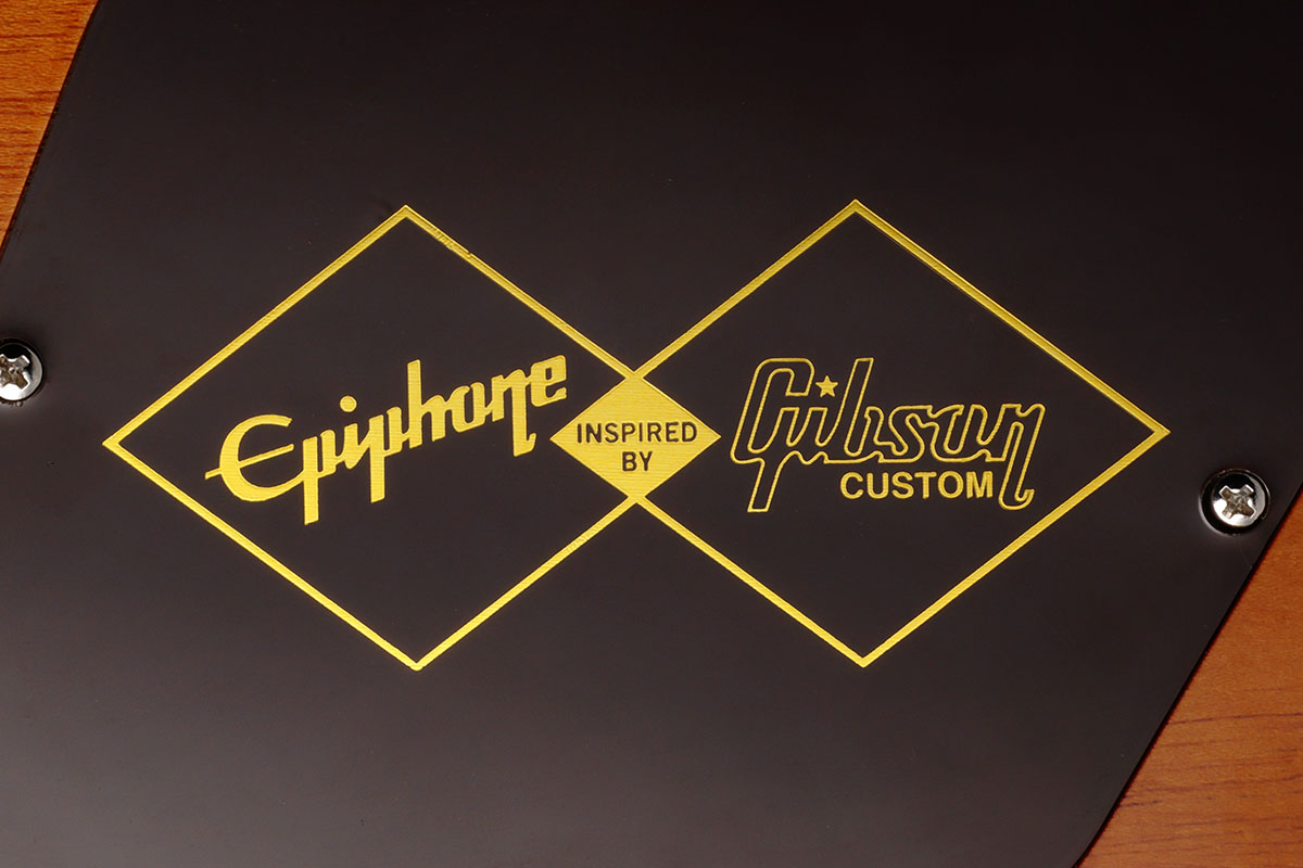 キャビティのバック・パネルには、金色に輝く“Epiphone Inspired by Gibson Custom”のオリジナル・ロゴが刻印されている。