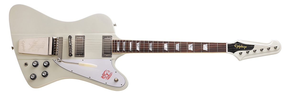 Epiphone Inspired by Gibson Custom / 1963 Firebird V Maestro Vibrola Reissue Polaris White(前面)