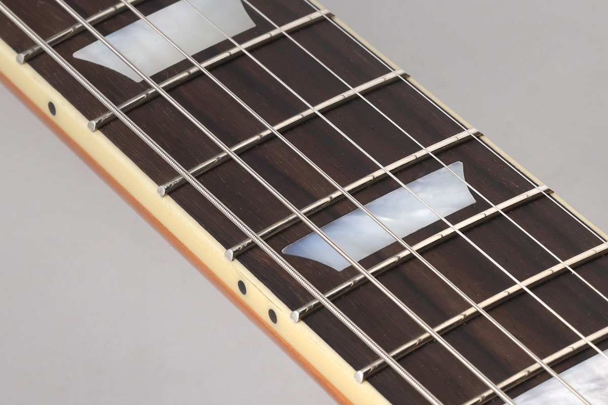 丸みを帯びたホーンやスリムなネック・プロファイル、ローズウッド指板とスモール・ブロック・インレイの組み合わせなど、現在はギブソン・カスタムでも発売していない62年製をベースとしたレアな仕様になっている。