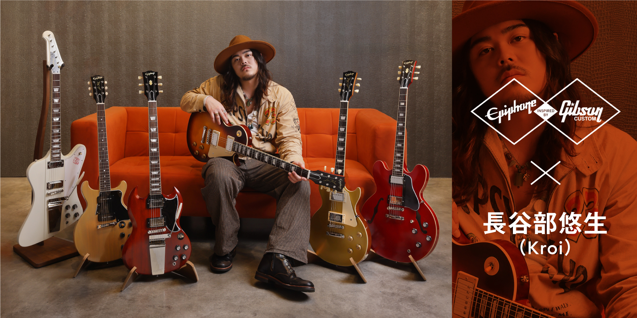 エピフォンの“Epiphone Inspired by Gibson Custom”は、ギブソン・カスタムとのコラボレーションによって、ギブソン史に輝くレガシーのリイシューを手がける現行シリーズ。今回、新たに8機種のリニューアルが発表され、さらなる注目を集めている。本記事では、リニューアルをとげた6機種を取り上げ、ギブソンの正統と言える最新モデルの実力を検証していこう。試奏者にはギブソン・ギターを愛用するKroiの長谷部悠生を迎え、じっくりとその音色をチェックしてもらった。