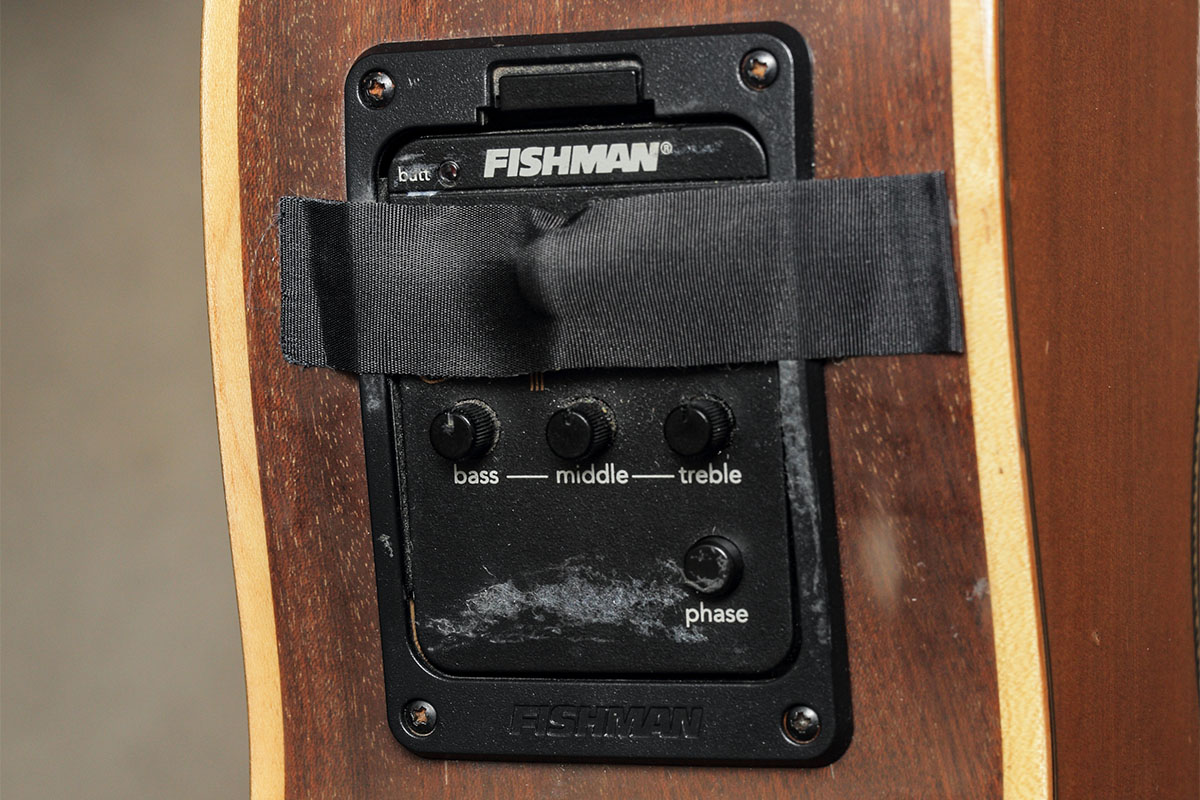 プリアンプはvolumeノブが動かないようにテープで固定されていた。bass、middle、trebleの各EQは12時にセッティング。