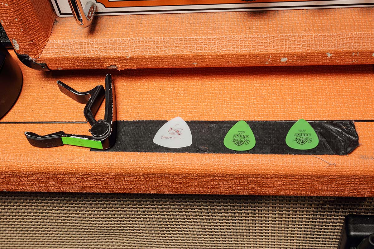 カポはJim DunlopのTrigger Capo Electric Curvedで、多くの楽曲で使用されている。
