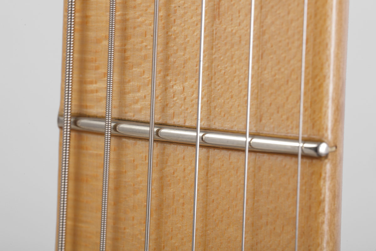 54〜56年製ストラトキャスターのストリング・ガイドは、テレキャスターにも使用されていたボタン型だった。