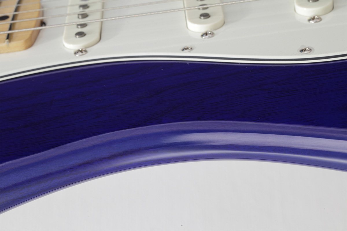 ボディは厳選された2Pのアッシュを使用。ネックはクォーターソーン・メイプルで、指板にもクォーターソーン・メイプルが貼られている。貼りメイプル指板は独特の艶やハリのあるサウンドが特徴だ。