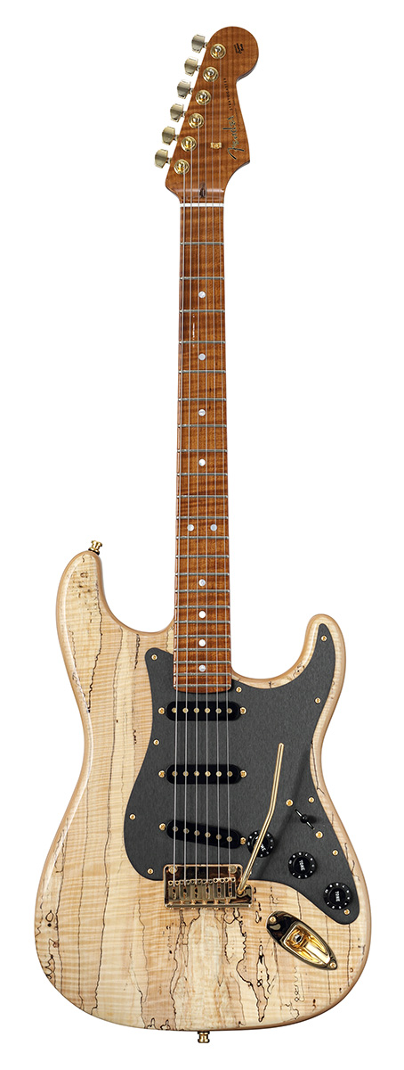 2025年10月に東京で開催されたスペシャル・イベント“Fender Experience 2025”のために、シニア・マスタービルダーのデニス・ガルスカが製作した特別なストラトキャスター。日本の伝統工芸でも重宝される日本産の銘木“トチノキ”(栃の木)を1/4インチの厚さでボディ・トップに貼り合わせ、柔らかな質感と美しい杢目をもたらしている。特別な木材から受けるインスピレーションでデザインされた見事な作品だ。
