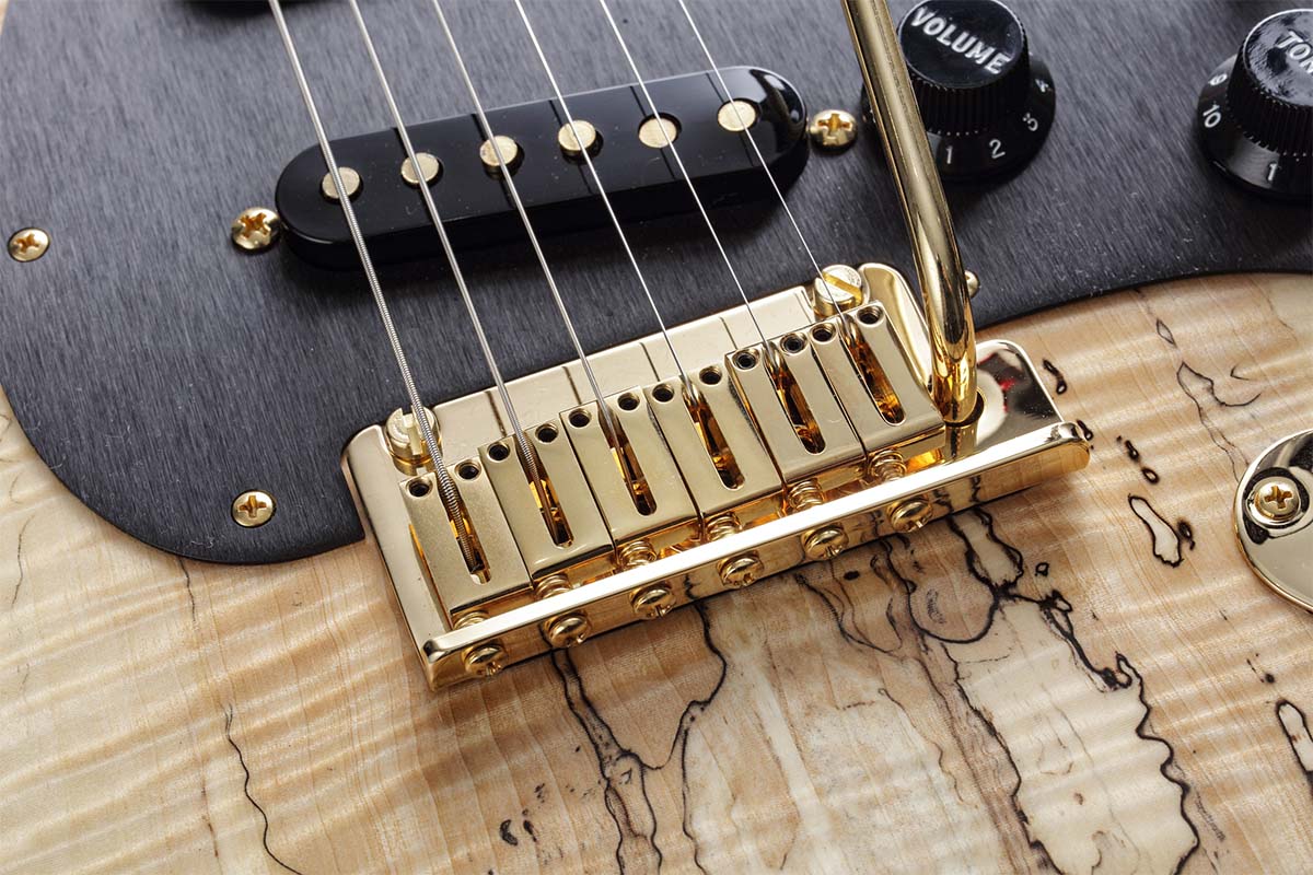 製作を手がけたのは、過去に家具職人としてのキャリアを持つシニア・マスタービルダーのデニス・ガルスカ。木材への深い造詣と経験に裏打ちされた彼のアプローチは、トチノキという木材の個性を的確にとらえ、その魅力を自然な形でストラトキャスター全体へと落とし込んでいます。