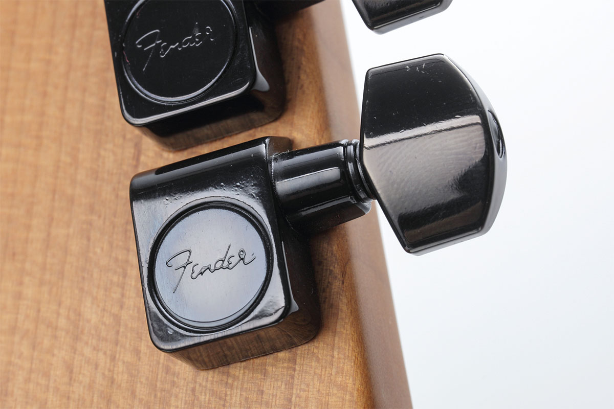 ネックをはずすことなくトラスロッドを調整できるホイール・ナット仕様。アメリカン・エリート・ストラトキャスターのスタイルを採用している。