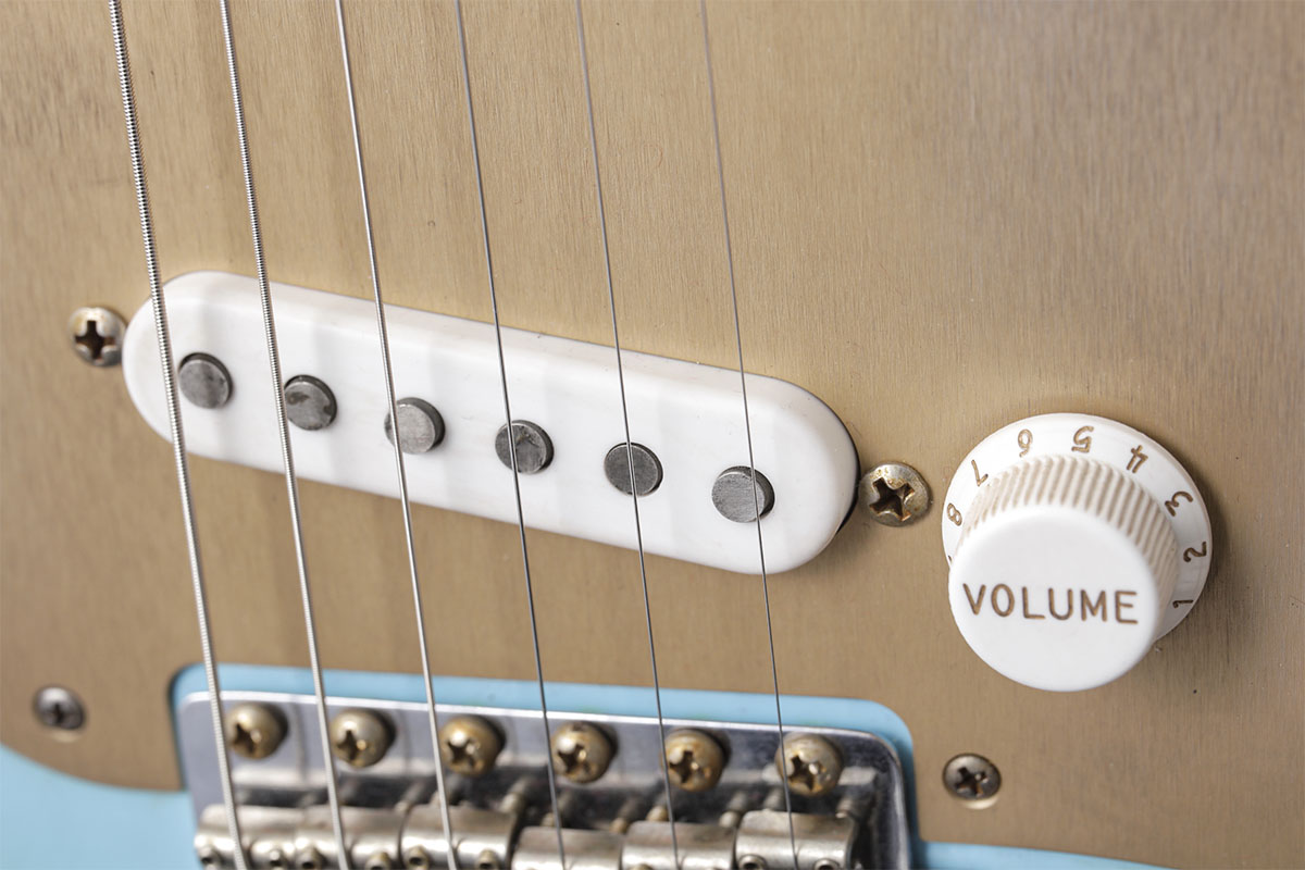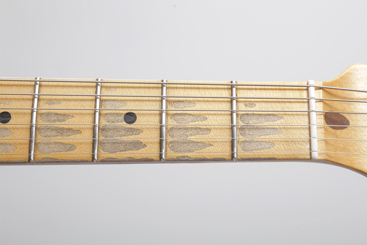 スペックは1954年のストラトキャスターをベースとしつつ、時代に合ったパーツ構成を取り入れ、現代の演奏性にも配慮した仕様となっている。クォーター・ソーンの木取りで作られた“54ソフトV”シェイプのネックに、ナット側の7.25インチから9.5インチに半径が変化していく円錐指板。フレットはビンテージ系のミディアム・ビンテージを採用している。ピックアップはもちろん、マスター・ワインダーのホセフィーナ・カンポスによる手巻きだ。