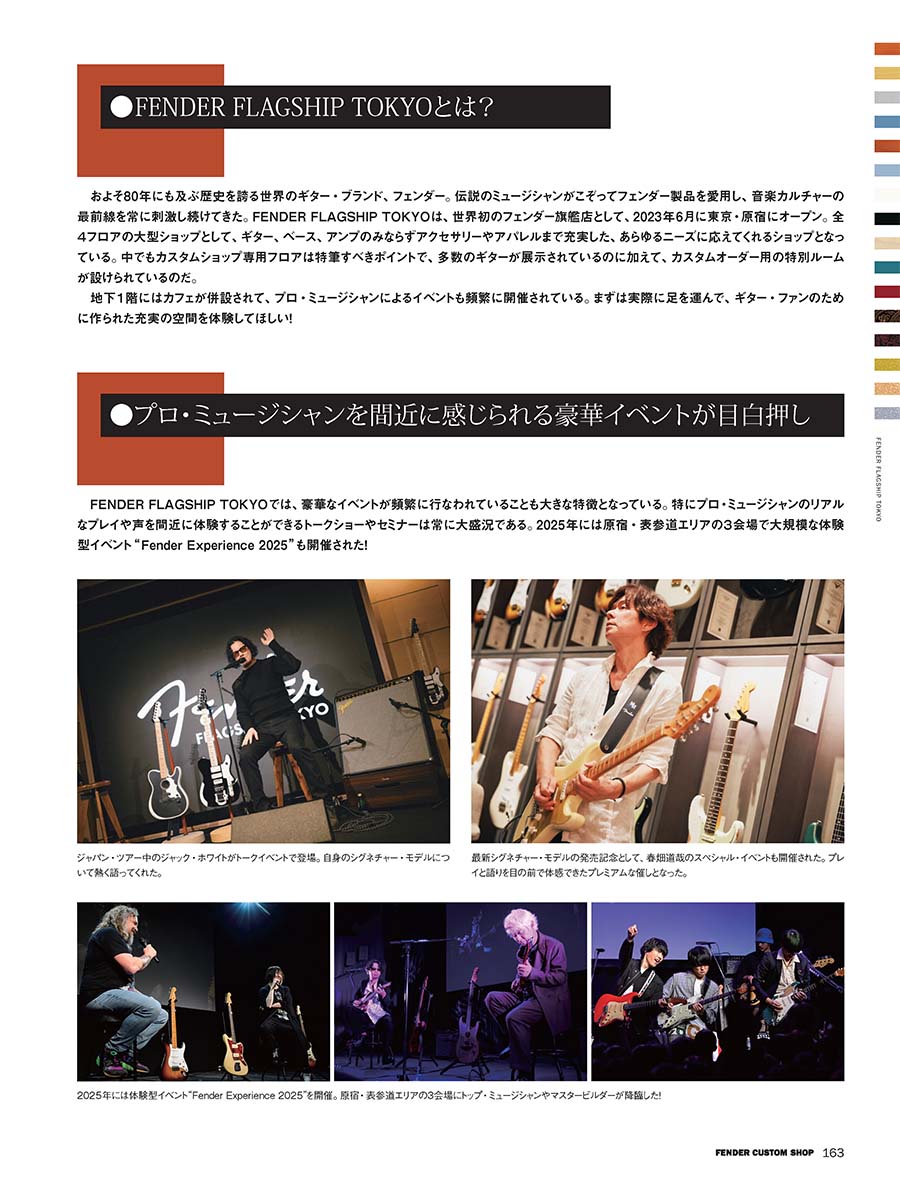 本ムックでは、Fender Flagship Tokyoの店舗フロアや限定モデルについてもフィーチャー。フェンダーカスタムショップ製品がフェンダー・ギター最高峰である所以を存分に体感できる1冊となっている。ぜひ手に取ってみてほしい。