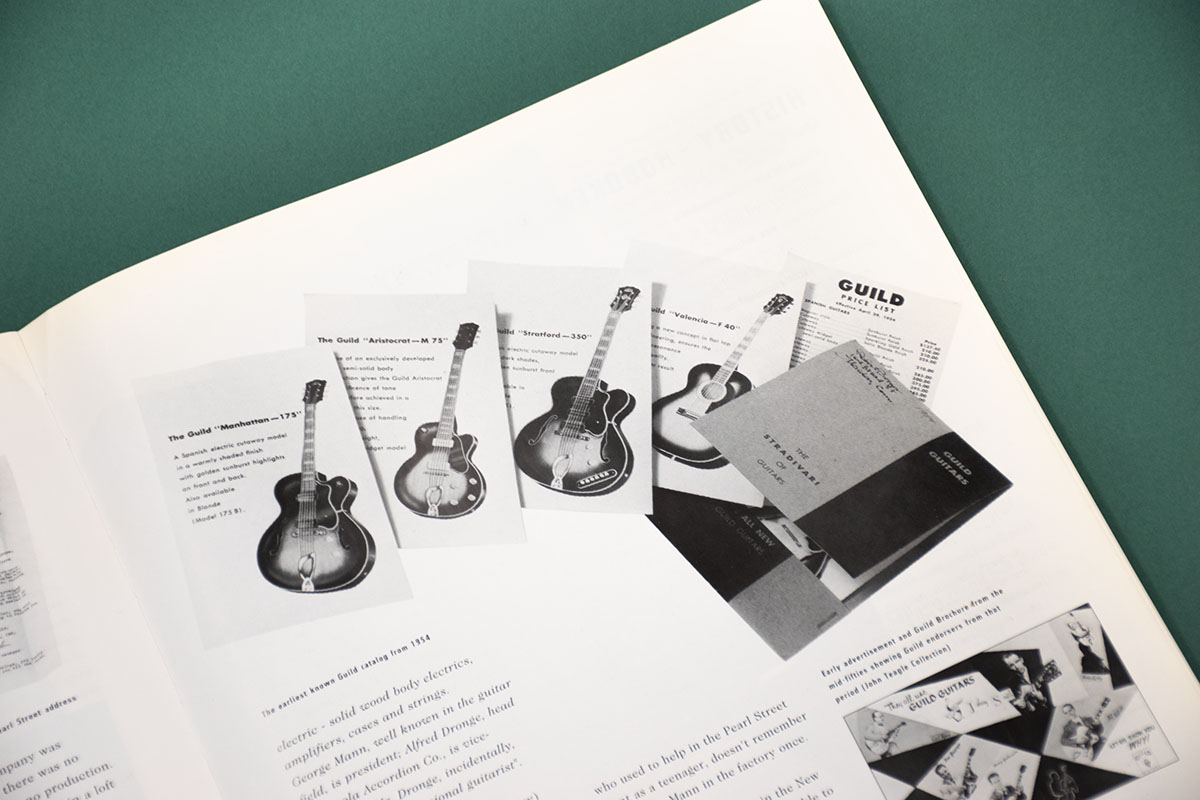 現在のギルドが公式に自社の歴史についての参考資料としている『The Guild Guitar Book』(1995年/Hal Leonard社刊)には、最初期である1954年のカタログ資料が掲載されている。