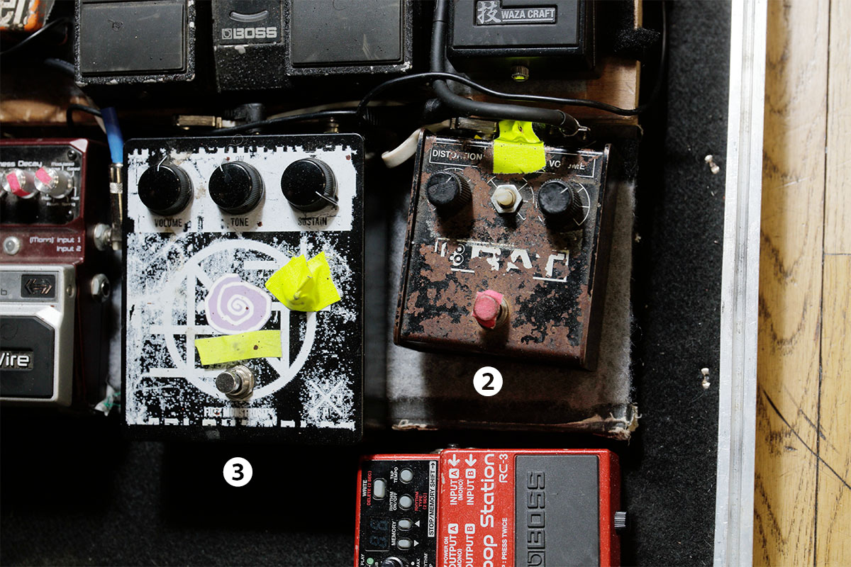 ②RATはブラック・フェイス期の1991年製。2015年に『Tired of Tomorrow』(2016年)のレコーディングをしていた際、プロデューサーのウィル・イップが所有していた個体に惚れ込み、同じ時期のものを入手。現在ではドミニクが最も気に入っているペダルだという。