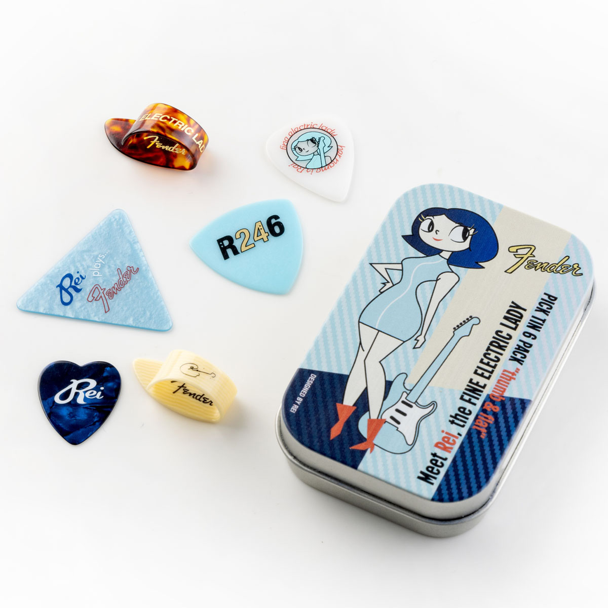 Rei Stratocaster R246に加え、Reiさんのシグネチャー・ピックとストラップも発売されています。