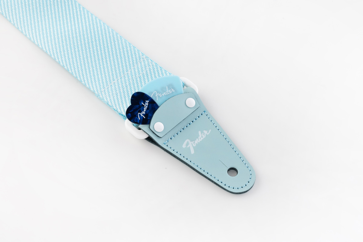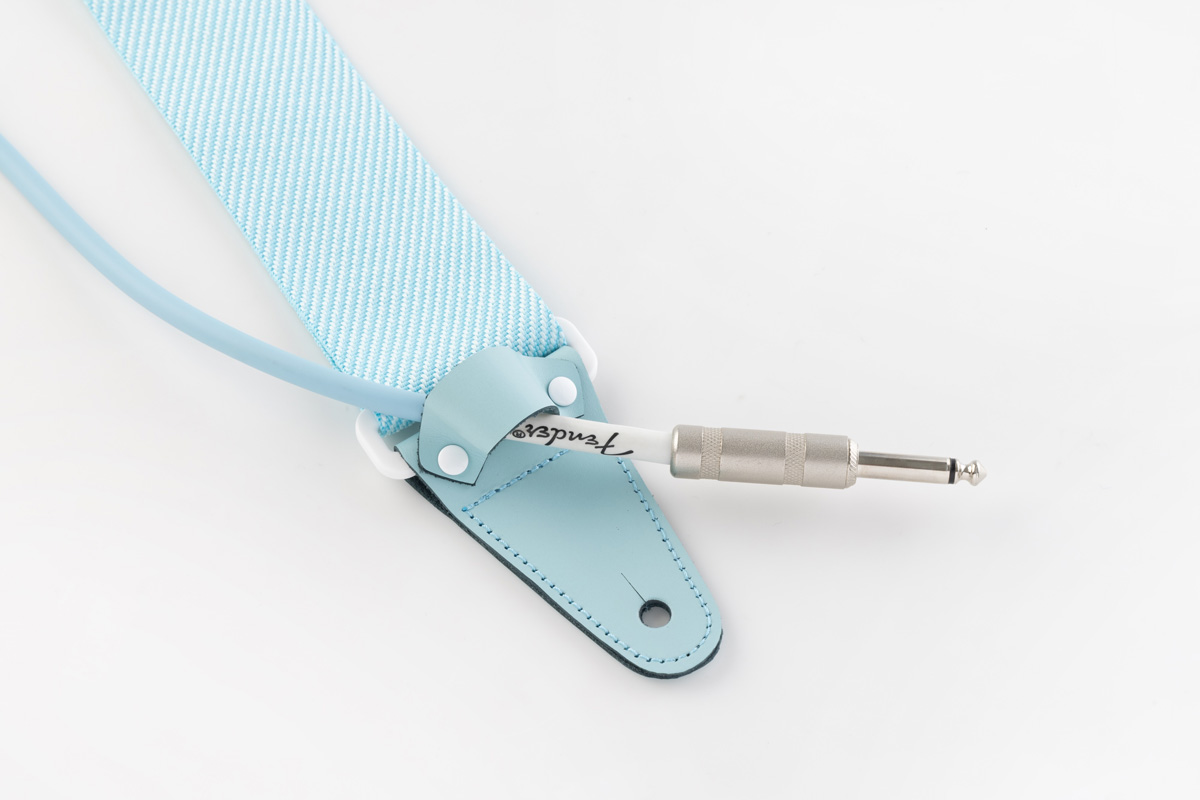 ボディのカラーは自分のデビュー・アルバム『BLU』(2015年)のジャケットとなるべく近いものを作ってもらったんですけど、ストラップとピックも同じ色をベースにしています。ストラップは伝統的なフェンダーのツイードを自分流にアレンジして、ボディとマッチングしたブルー・ツイードにしました。