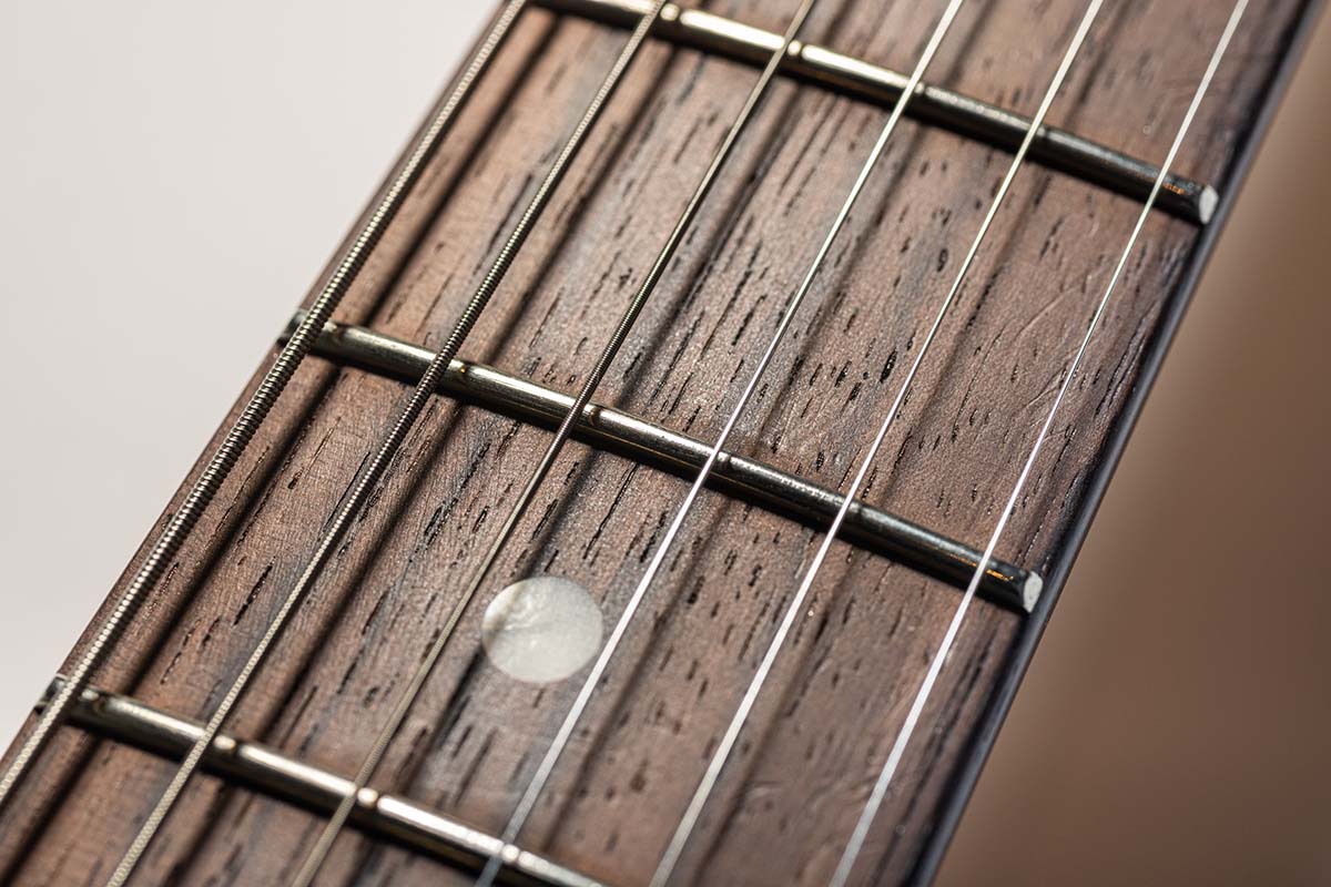 そうだったんですね! 楽曲のお話はのちほど詳しく聞かせていただきます。ギターのスペックに話を戻しますと、2点支持ブリッジやGraph Tech製のテフロン・サドルなど、実用的なパーツを積極的に採用していますよね。