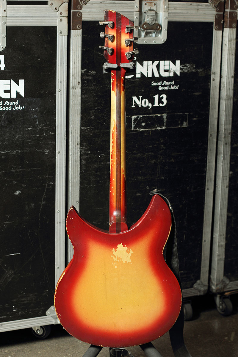 リッケンにしては弦高が高いほうだと思います。赤いほうはフレットをミディアム・ジャンボに打ち直しているんですよ。もともとリッケンは凄く低いフレットが打ってあって、弦高も低くて、弾きにくくて。なのでミディアム・ジャンボに打ち直してもらいました。
