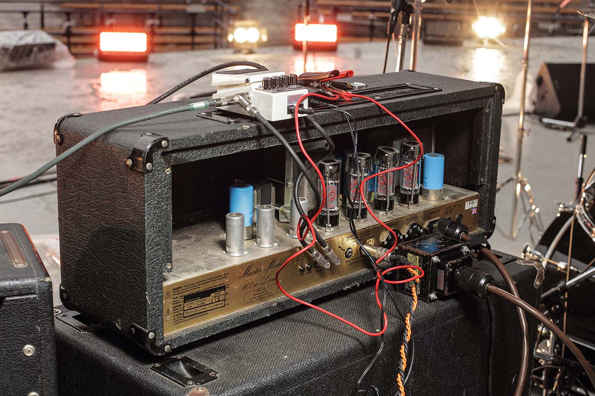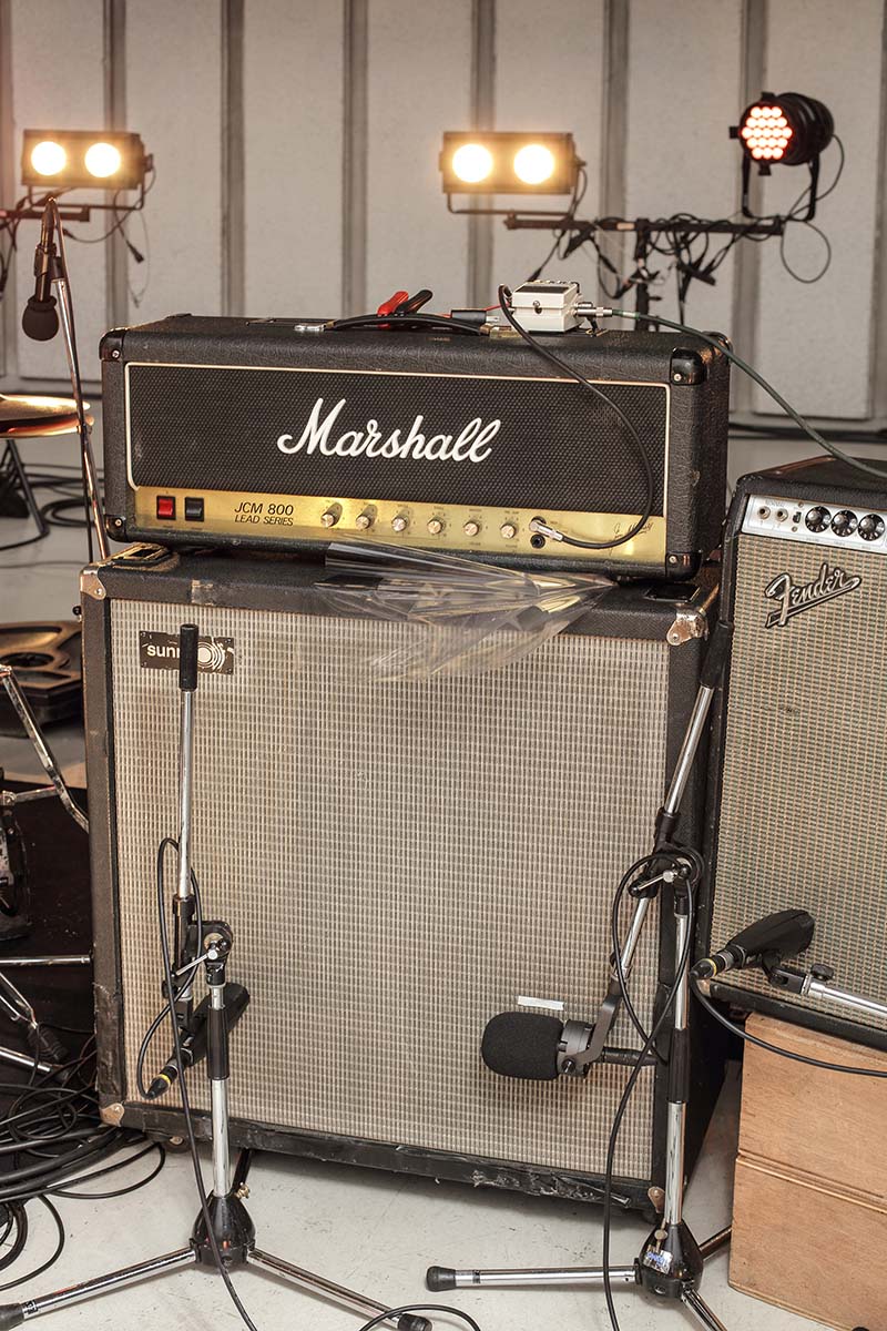 メインのアンプは五味が長らく愛用する100WモデルJCM800 2203で、キャビネットは90年代のSunn Model 412という組み合わせ。JCM800 2203はステップアップ・トランスを通し、117Vで鳴らしている。