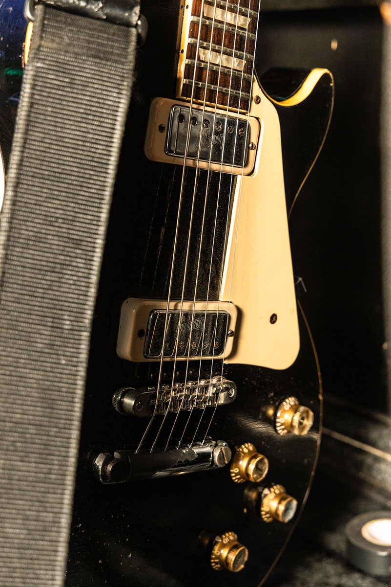 まず、黒いレス・ポールは20年くらい前……ひょっとしたらもっと前に買ったんだ。買った時は80年代って聞いていたけど、シリアル・ナンバーを確認したら実は70年のものでね。けっこう良い値段で手に入れられたよ。かなり重いんだ。