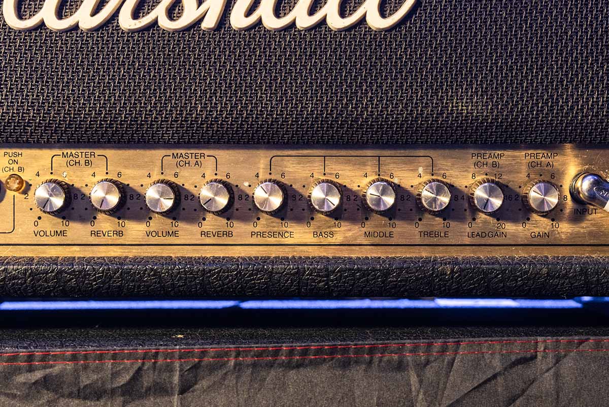 JCM900 4100はCH.Aを使用。各ノブは、MASTER VOLUMEが8、REVERBが1、PRESENCEが4、BASSが9.5、MIDDLEが2.5、TREBLEが3、PREAMPが3にセッティングされていた。