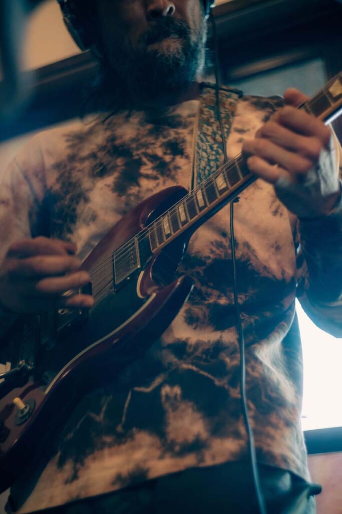 三根 デザート・ロックだったり、ちょっと三味線弾いてるような感覚もあるかな。あと「Nu Land」はレコーディングの寸前までギターのアレンジが固まってなかったんですよ。最終的に、夜のホテルで洋平君にガヴァメント・ミュールの動画を見せてもらって、なるほどと。“じゃあクイーンとか70年代のサザン・ロックが好きなアフリカの黒人ギタリストっていうコンセプトで弾く”、みたいなことを言って(笑)。