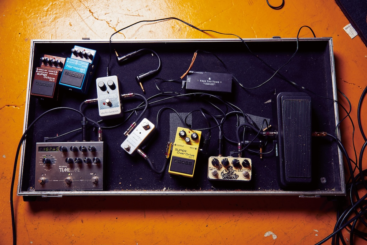 三宅 ワウは同じCry Babyでも個体差が凄くあるし、ある意味で不安定な楽器だから奥が深いです。自分は足だけ左利きだから、ワウは左に置いているんですけど、そのほうが歌いながら操作しやすくて。ワウは自分にとってはかなり重要なギアですね。