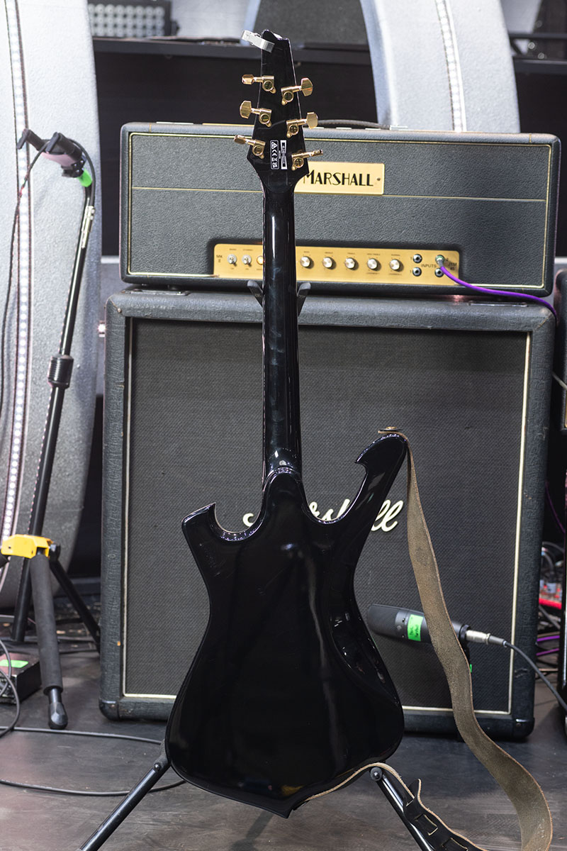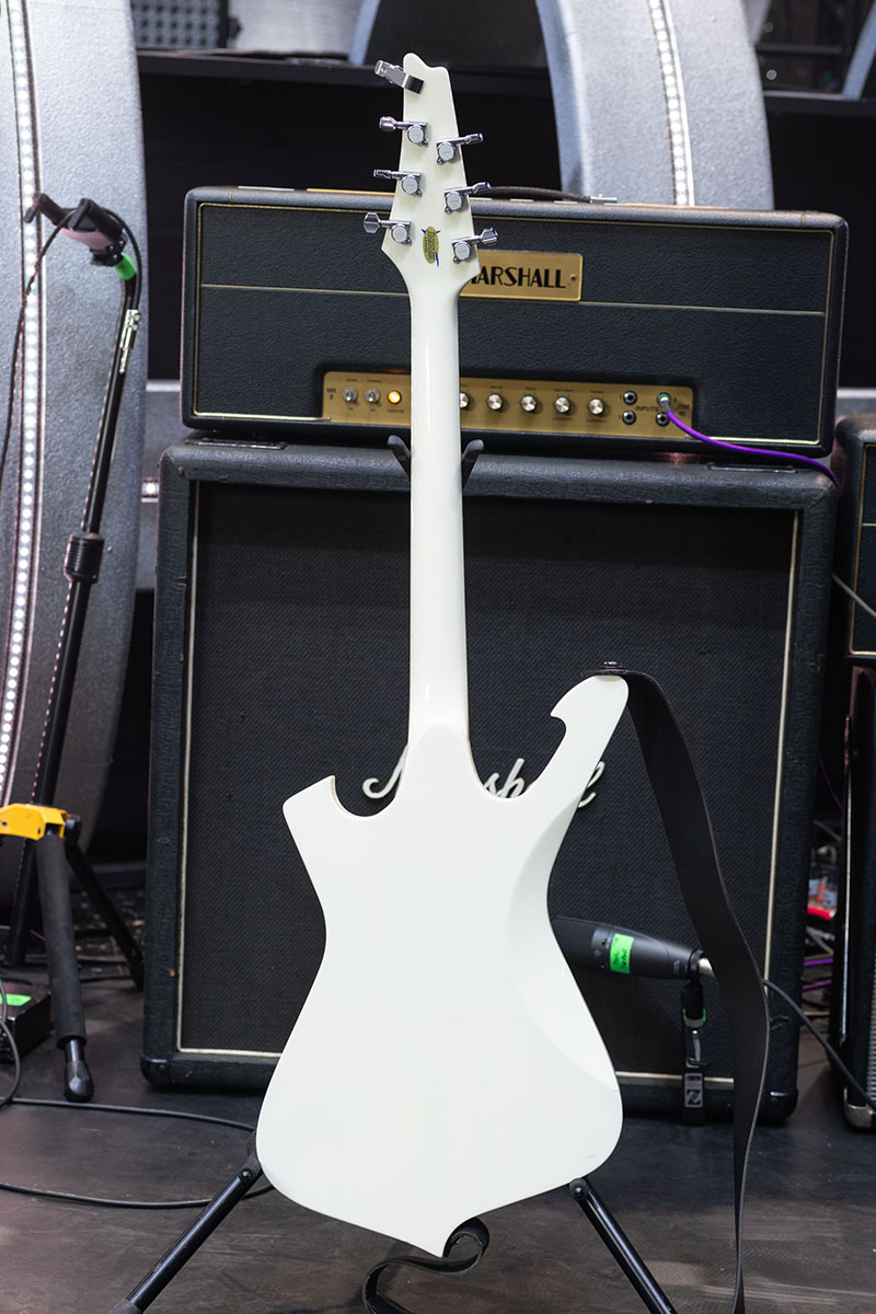 入手したのは2024年のツアーが始まる直前で、改造点はなし。ボディはオクメ、ネックはオクメとメイプルの3ピース、指板はバウンド・エボニーという材構成。ピックアップはDiMarzioのAir Classicが搭載されている。