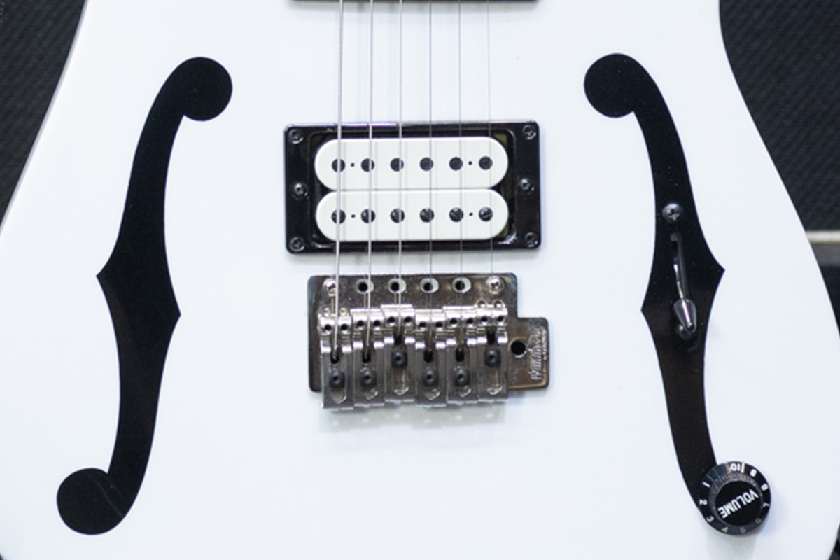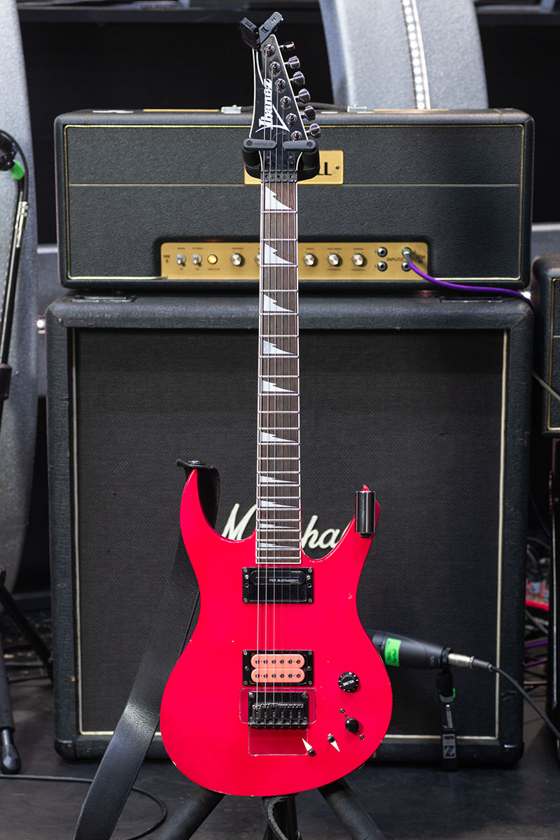 当時のギターの多くにはロッキング・トレモロが付いていたからね。Ibanezのカスタム・ショップに頼んで木片で穴を塞いでもらい、代わりに固定式のブリッジにしてもらったんだ。