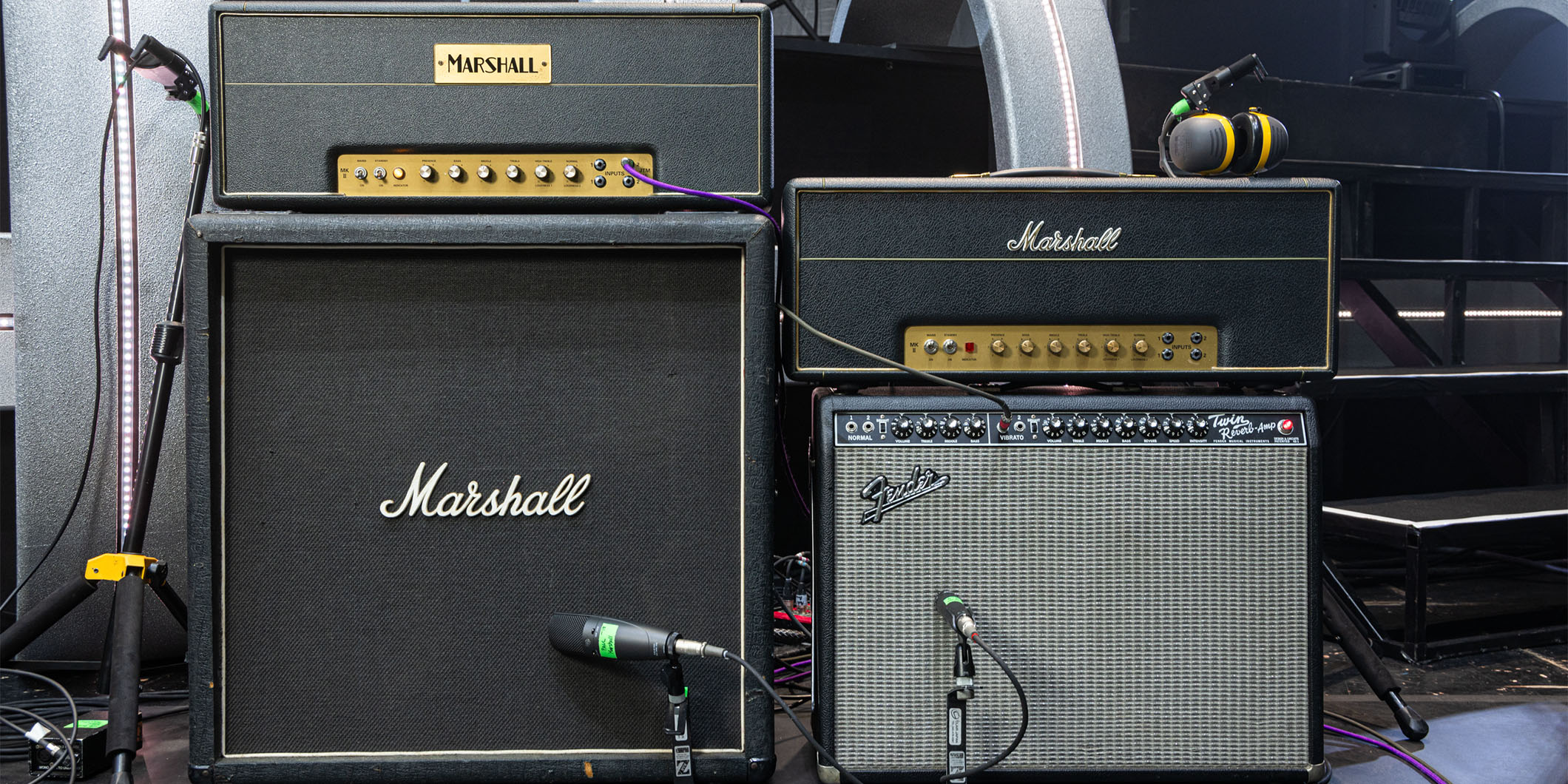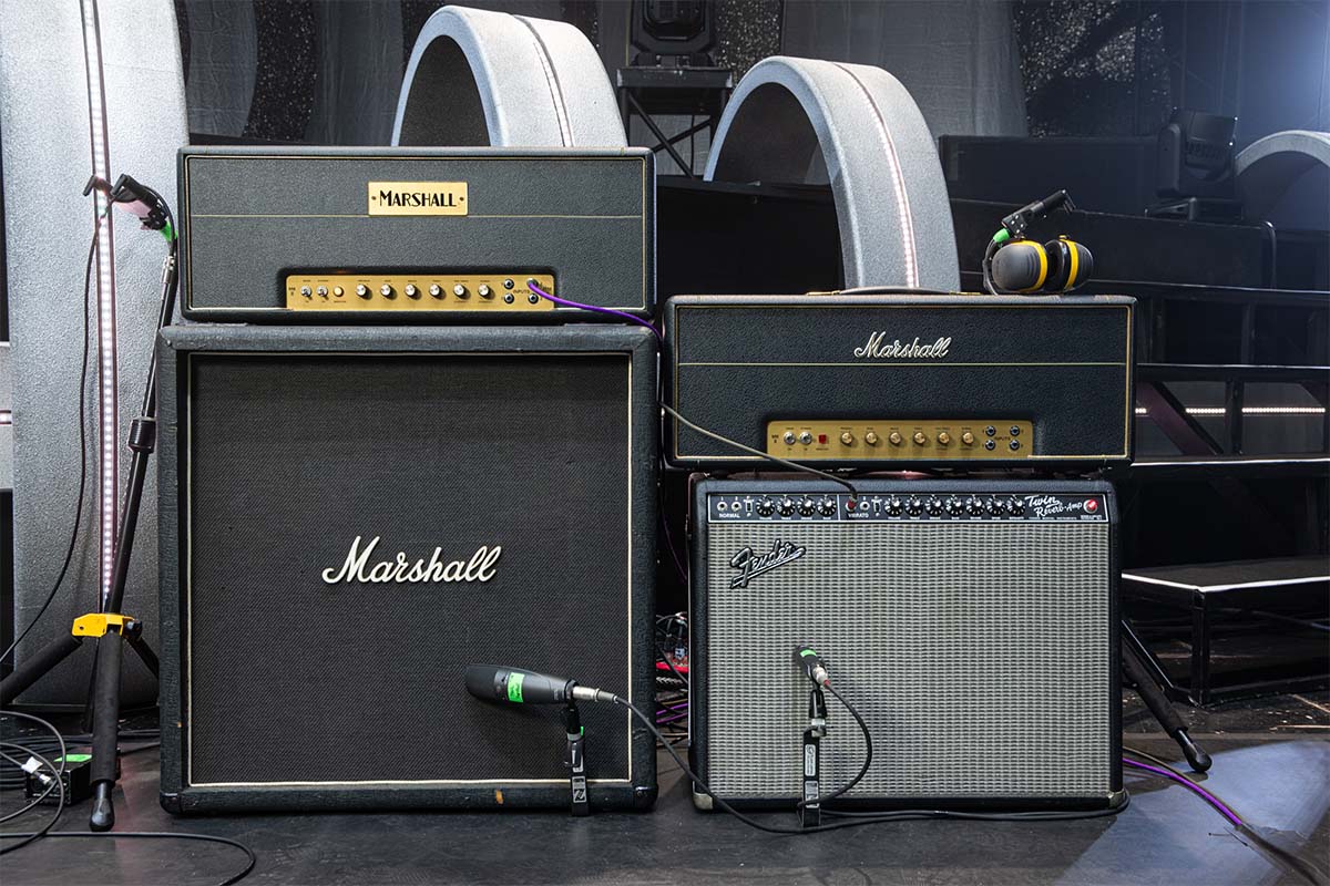 ペダルボードからのシグナルはどのアンプにも同じ状態で入力されていて、サウンド・エンジニアにどれが好きかを聞いてみたんだけど、僕も彼もマーシャルのサウンドを一番気に入っていたよ。