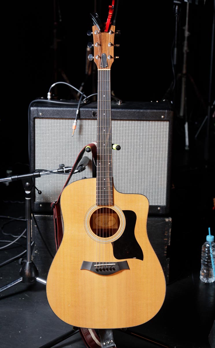 RIRIKOがメインで使用するアコギは、2021年製のTaylor 110ce。2024年にリサイクルショップで購入したものだ。ボディ・トップは単板のスプルース、サイドとバックには独自のレイヤード・ウッド構造を採用。ピックアップ・システムはTaylorのExpression System 2を搭載している。