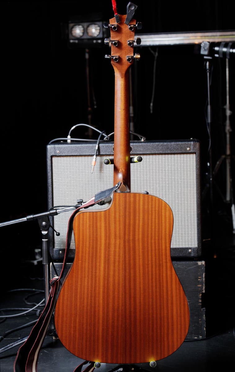 弦はD’AddarioのEJ16 Phosphor Bronze Wound Light(.012〜.053)を使用し、本器のチューニングも半音下げにセット。