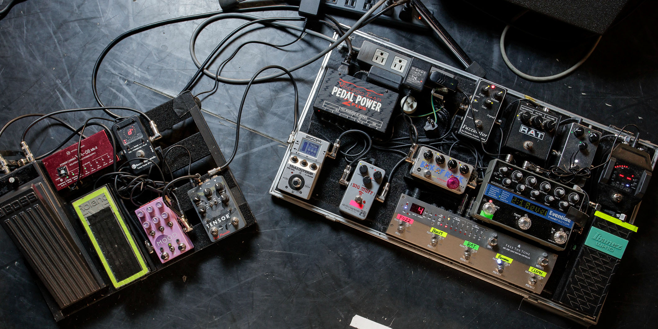 あんまり音痩せを考えていなくて、パッチ・ケーブルもバラバラで、メイン・ボードではめっちゃ長いパッチを引き回しています。FV-300Lをつなぐとハイが落ちるんですけど、自分のセットだとそれがちょうどいいんですよね。しかもワイヤレスも使っているので、ギターの信号がけっこうダイレクトに入力されるので、うしろのペダルで音を鈍らせないといけないんです。
